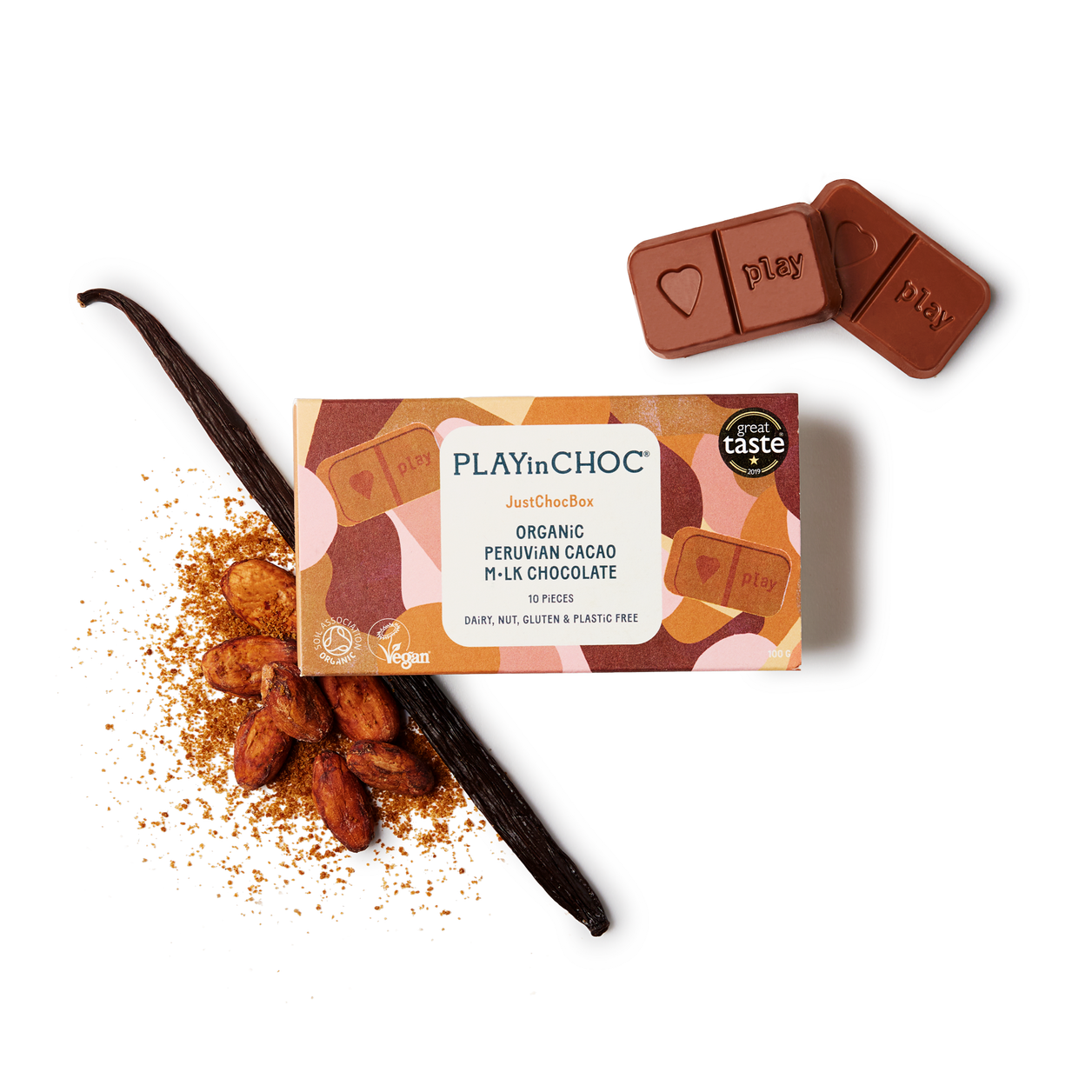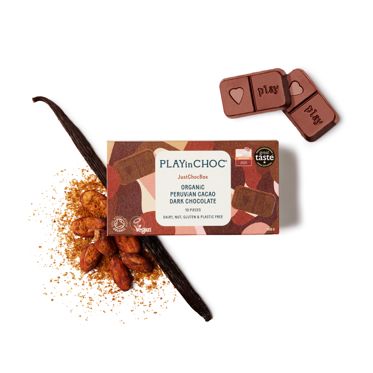 Our chocolate is organic, vegan and allergen free and there’s not a trace of refined sugar to be found anywhere; we use only natural ingredients; Peruvian cacao, vanilla and coconut. Those ingredients are fairly traded, and all our packaging is plastic free.