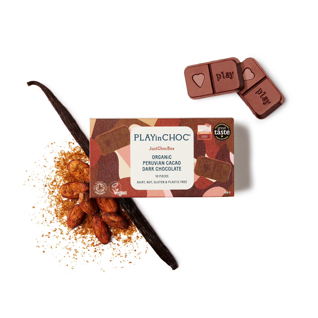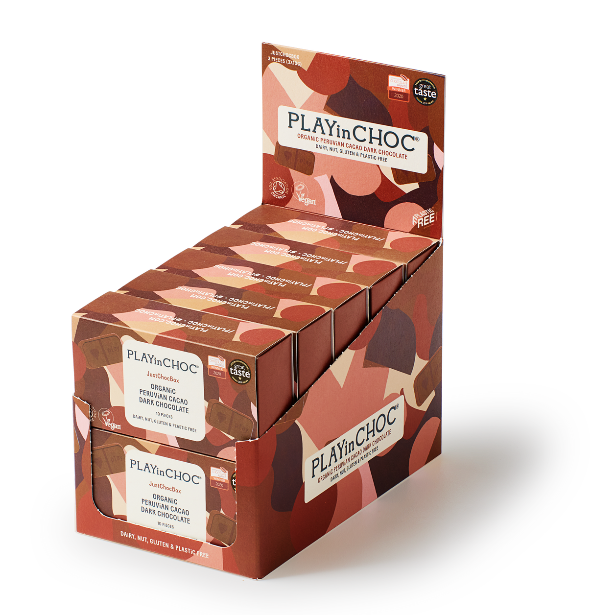10 JustChoc Boxes of 10 x 10g deliciously creamy organic dairy free chocolates.