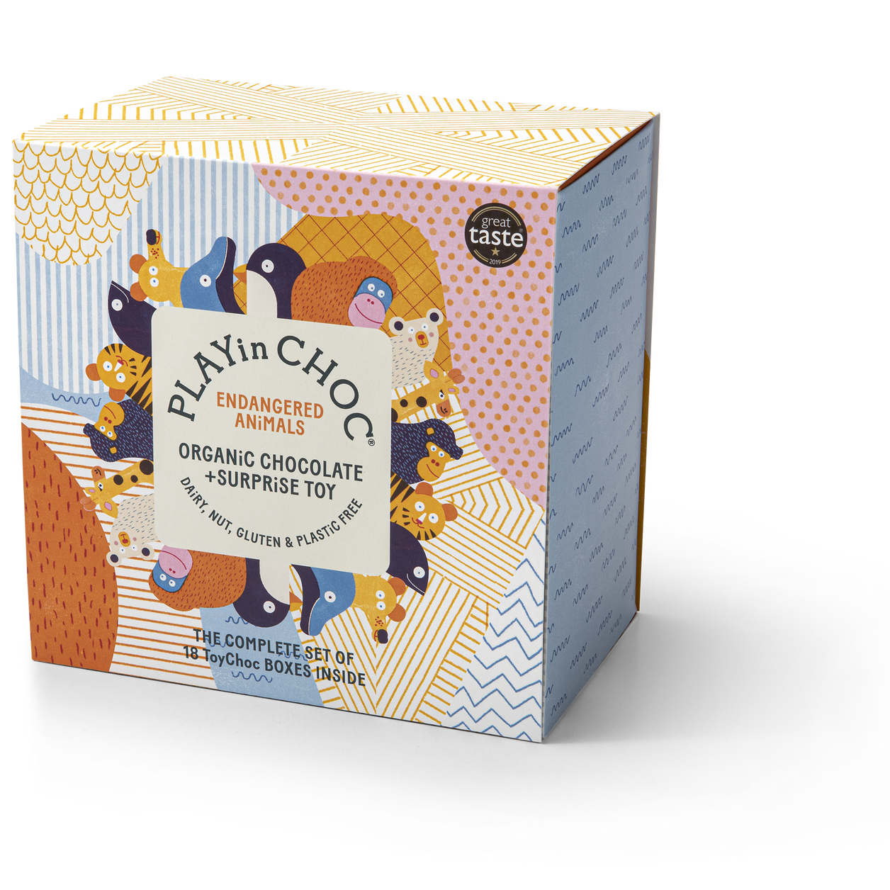 All eighteen ToyChoc Boxes® from the Endangered Animals collection in one boxed set. The outer sleeve can also be opened up into a landscape to play with all 18 toys.