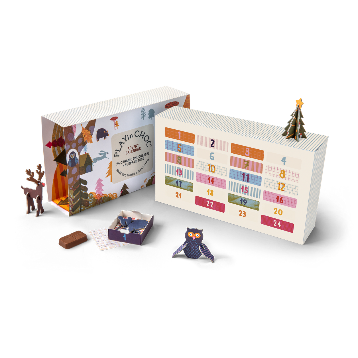 Countdown to Christmas with our famous, eco-friendly advent calendar. Behind each of the 24 windows you’ll find a super-cute festive toy plus one of our dreamy, creamy chocolates and fun facts card. That’s three treats every day! Each planet-friendly collectable doubles up as a super-cute decoration. Not-so-secret news; adults love our ethical yuletide calendars as much as children.
